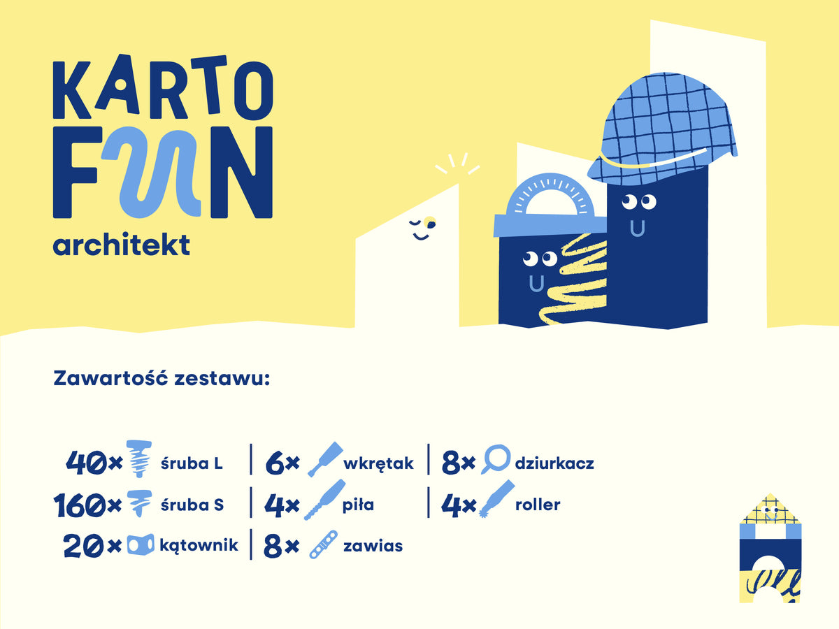 Narzędzia KartoFun zostały specjalnie zaprojektowane z myślą o młodych konstruktorach. Zaokrąglone krawędzie oraz przyjazne, łatwe w użyciu formy zapewniają bezpieczną zabawę podczas budowania z kartonu, rozwijając kreatywność w kontrolowanych warunkach.