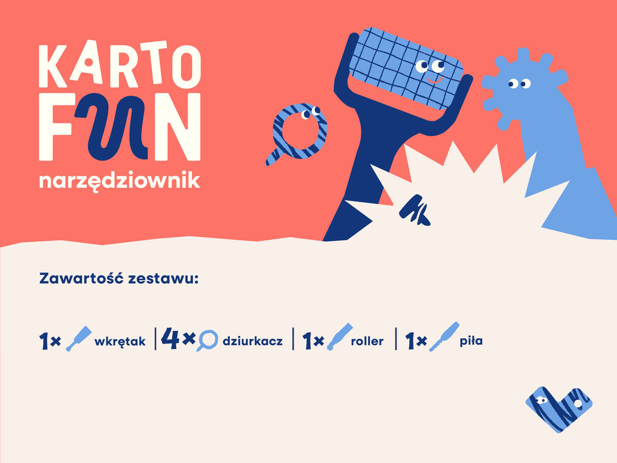 Narzędzia KartoFun zostały specjalnie zaprojektowane z myślą o młodych konstruktorach. Zaokrąglone krawędzie oraz przyjazne, łatwe w użyciu formy zapewniają bezpieczną zabawę podczas budowania z kartonu, rozwijając kreatywność w kontrolowanych warunkach.